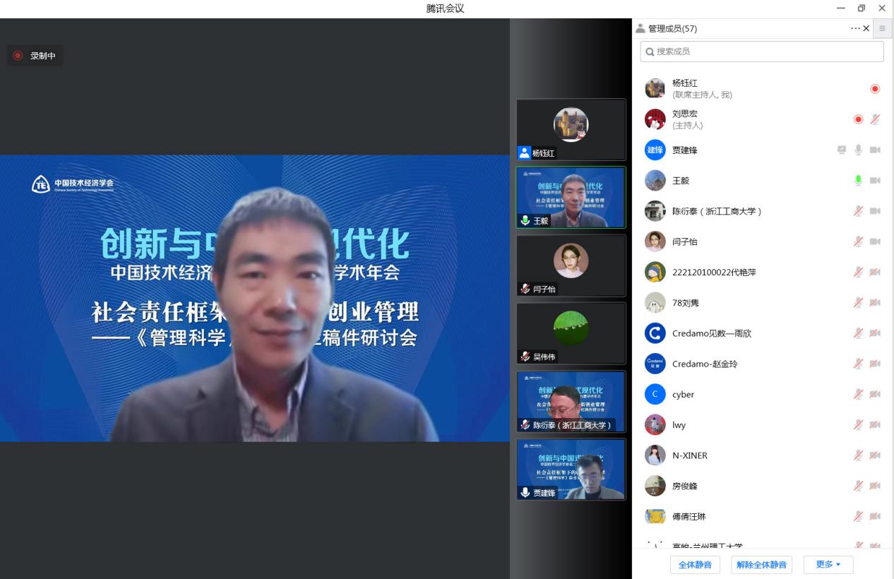 2022年12月18日,由《管理科学》杂志联合中国技术经济学会第二十九届学术年会(2022)共同主办的创新创业管理专栏稿件研讨会在线上召开。会议以“社会责任框架下的创新创业管理”为主题,在“创新、协调、绿色、开放、共享”的新发展理念指导下,探索社会责任要求下的创新创业管理的新理论和新范式。会议由中国技术经济学会技术孵化与创新生态分会副主任委员兼秘书长、哈尔滨工业大学经济与管理学院战略与创新系主任吴伟伟教授主持。