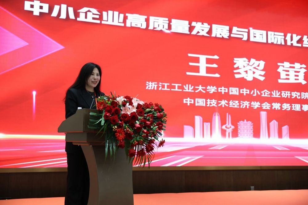 中国技术经济学会常务理事王黎萤在致辞中简要介绍中国技术经济学会中小企业分会任务、使命。希冀本次研讨会共谋新时代背景下中小企业高质量发展的新路径和新策略,共创中小企业国际化经营的新思路、新政策、新模式,为中小企业的繁荣和进步贡献智慧和力量!