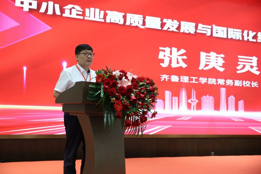张庚灵在致辞中介绍齐鲁理工学院服务国家、山东省重大发展战略,助力济南章丘中小微企业创新发展等情况。他表示本次研讨会一定会在促进中小企业高质量发展和国际化经营方面,在推动学校深化校企合作,产教融合方面起到重要的推动作用。