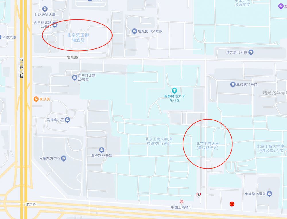 (3)7天优品酒店(北京花园桥地铁站店):距北京工商大学(阜成路校区)步行1.7公里。