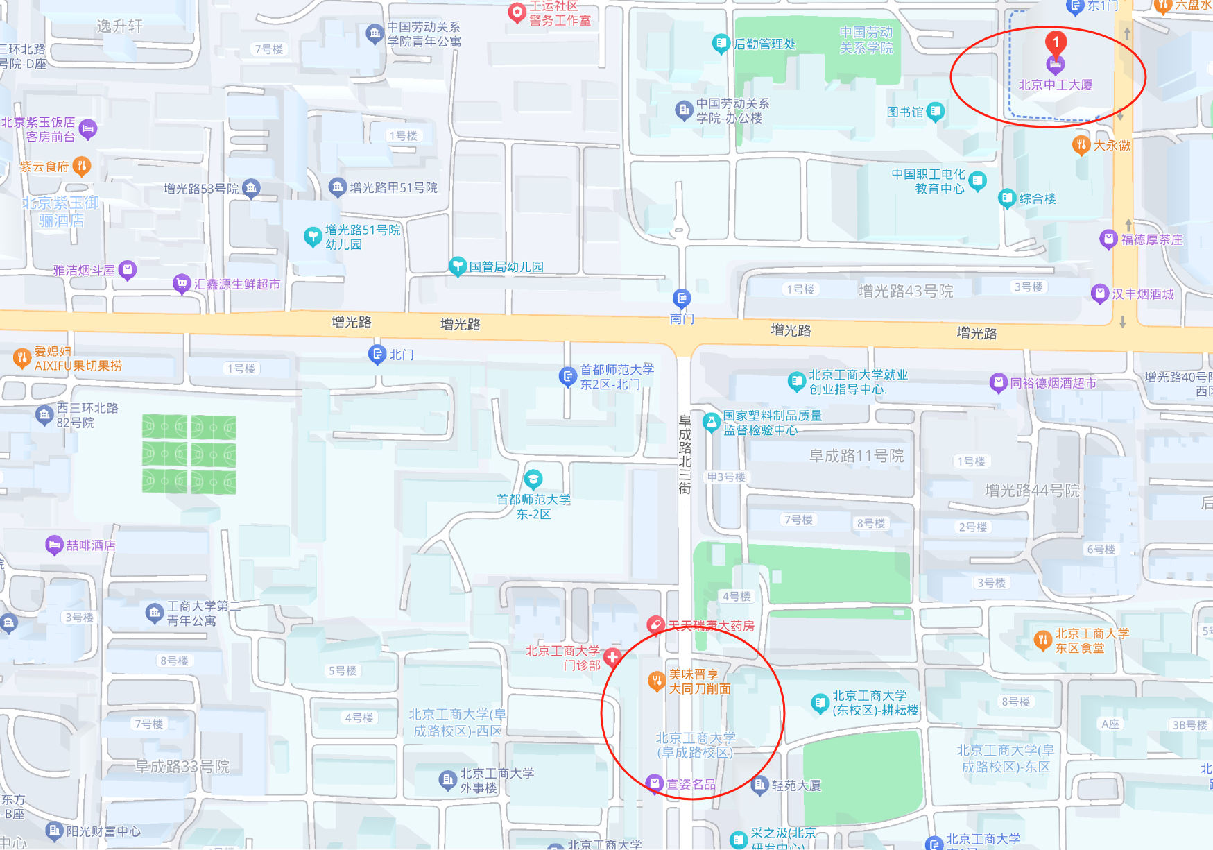 地址: 北京市海淀区阜成路11号、33号北京工商大学东区大礼堂南侧