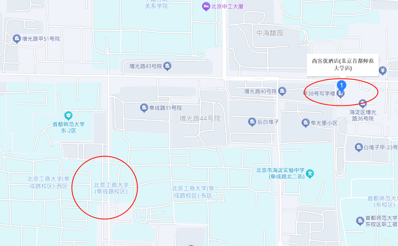 (1) 尚客优酒店:距北京工商大学(阜成路校区)步行930米。
