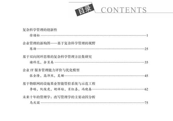 《复杂科学管理》(第1辑)于2020年初正式出版发行,共收录了6篇文章,研究主题涉及:“复杂科学管理”的创新性;企业管理的新构图——基于复杂科学管理的视野;基于双向闭环思维的复杂科学管理方法集研究;企业IT服务管理能力评价与优化模型;基于物联网的设施果业智能管控系统与示范工程;未来十年的管理学:改写管理学的主要动因分析。